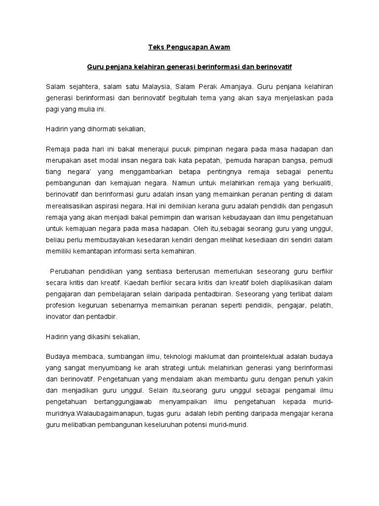 Awam, kemungkinan untuk bersentuhan adalah tinggi. Contoh teks pengucapan awam tentang harapan. Doc teks pengucapan awam nur mazni academia.
